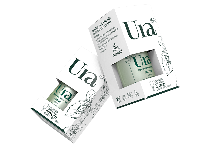 El formato de URA más versátil, permite la aplicación tópica en el área deseada, al igual que permite verter la solución en difusores, vaporizadores o tinas. Recomendado para malestares medios a intensos en mayores de 12 años. Controla su intensidad por la cantidad de gotas.